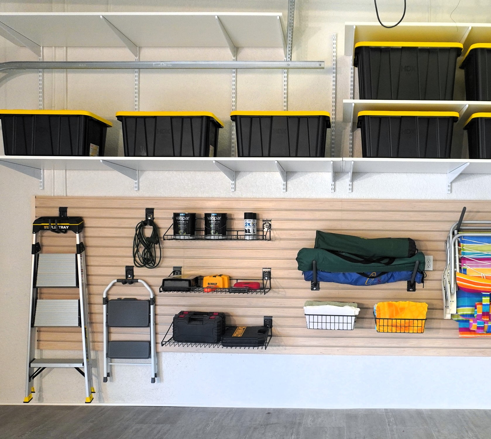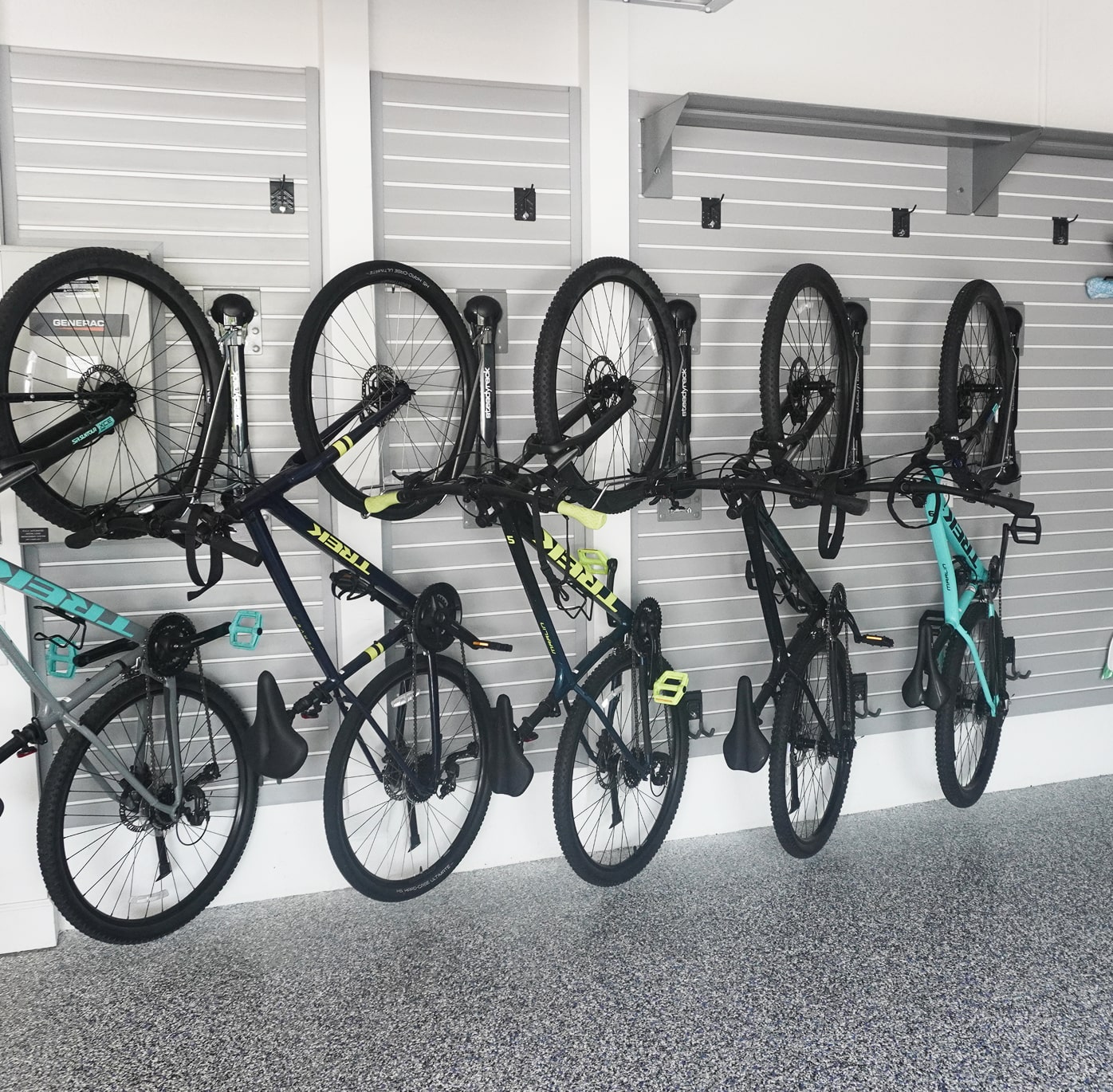 Flexible wall systems with hooks, baskets, and racks to store tools, bikes, and more.