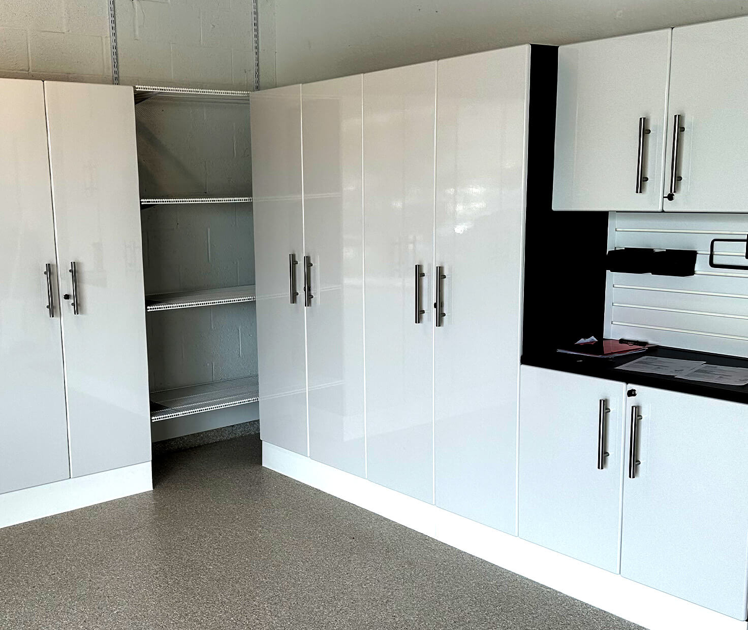 Our custom cabinets and shelving are designed to maximize storage, protect your belongings, and withstand Florida’s humidity. Every system is measured and installed for your space, ensuring a clean, functional garage that works as hard as you do.