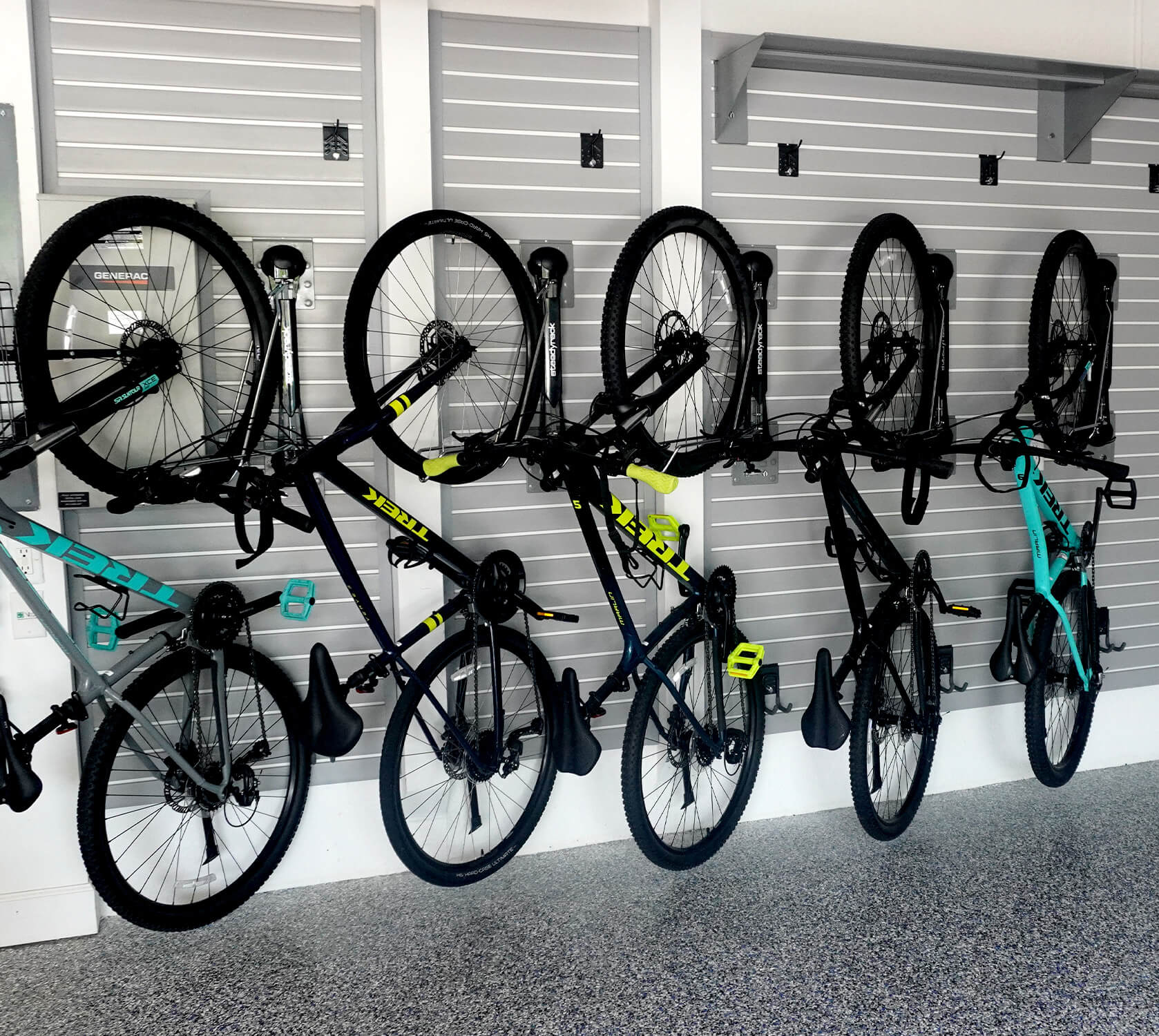 Slatwall and wall organizers create flexible, vertical storage for tools, sports gear, bikes, and everyday essentials—designed to adapt as your needs change.